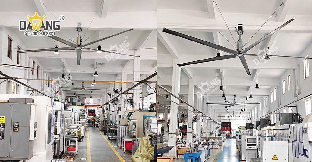 铝厂作业车间设备密集、材料堆积多,散热难、通风差。夏季高温时,车间内设备释放的热量让作业环境更加炎热难耐。原本安装的小型壁扇,风量小,通风降温效果在偌大的车间里效果不明显。车间空间大,空调安装、设计复杂,耗能也高,长期使用也是一笔不小的开支。